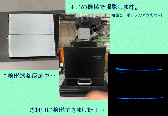 本日はWestern blotケミルミによるタンパク質の検出を行いました。最近はブロッキング剤を工夫してだいぶ非特異的なタンパク質の検出を抑えつつ、目的タンパク質をしっかり検出できるようになりました。