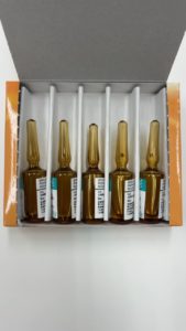 怪しいバイヤルですが、DMSOという試薬です。阻害剤が脂溶性のものなので、この試薬に溶解・調製してマウスへ腹腔内注射を実施します。2週間毎日注射し、ある酵素の活性がアレルギー性皮膚炎の悪化に関与しているかを調査します。